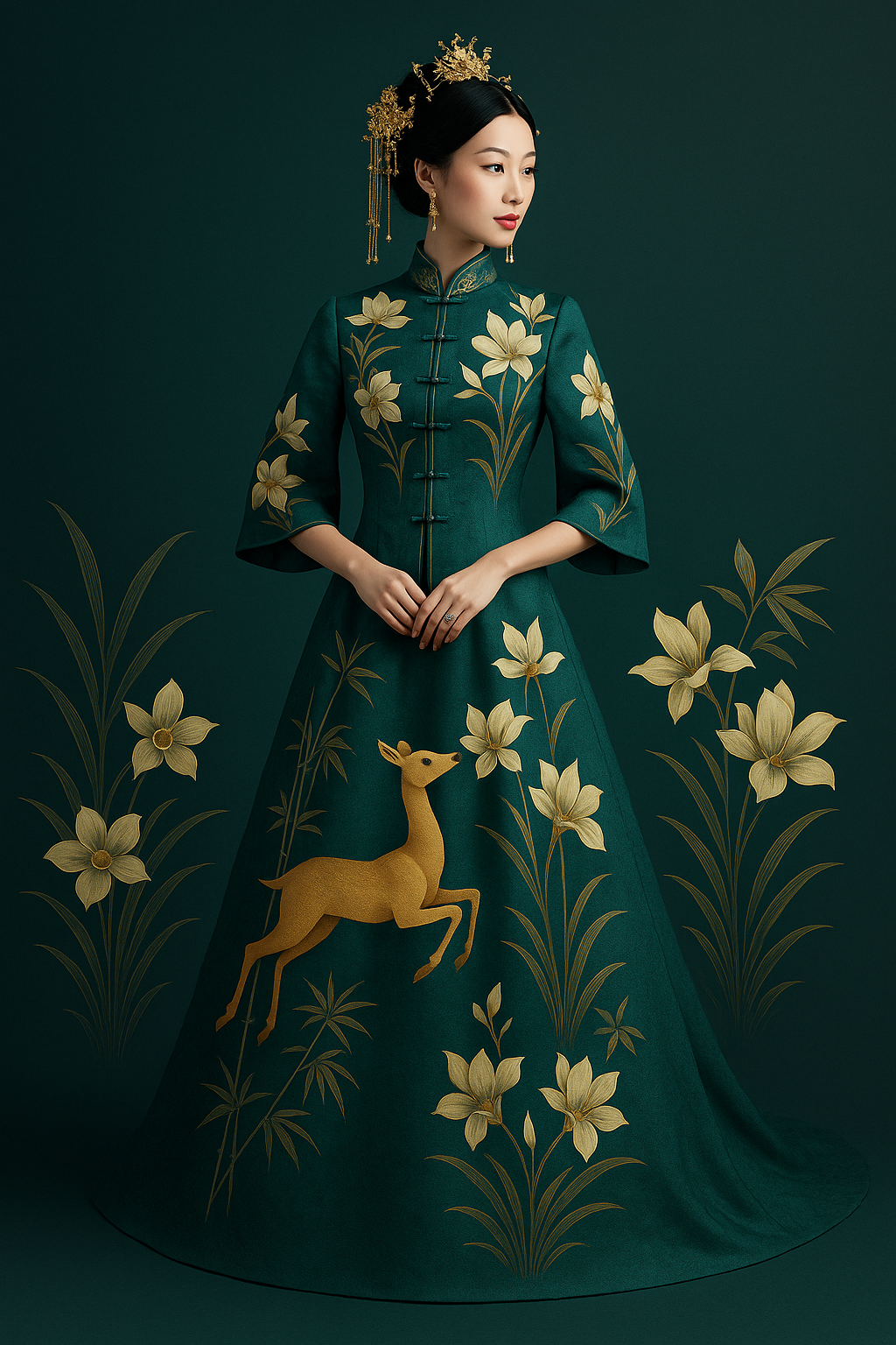 A glimpse into neo Chinese fashion with fresh green vibes.