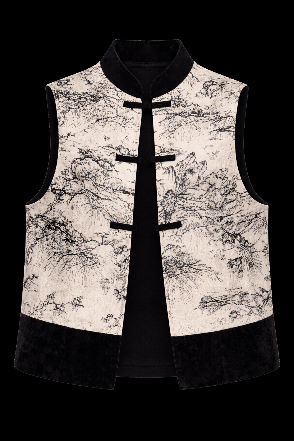 Inspired by the quiet elegance of traditional Chinese painting, this botanical vest from Deerhui Secret blends heritage artistry with modern minimalist tailoring.