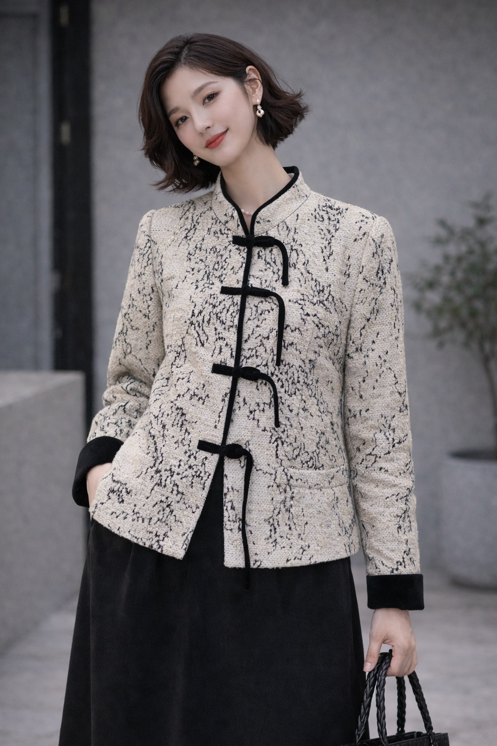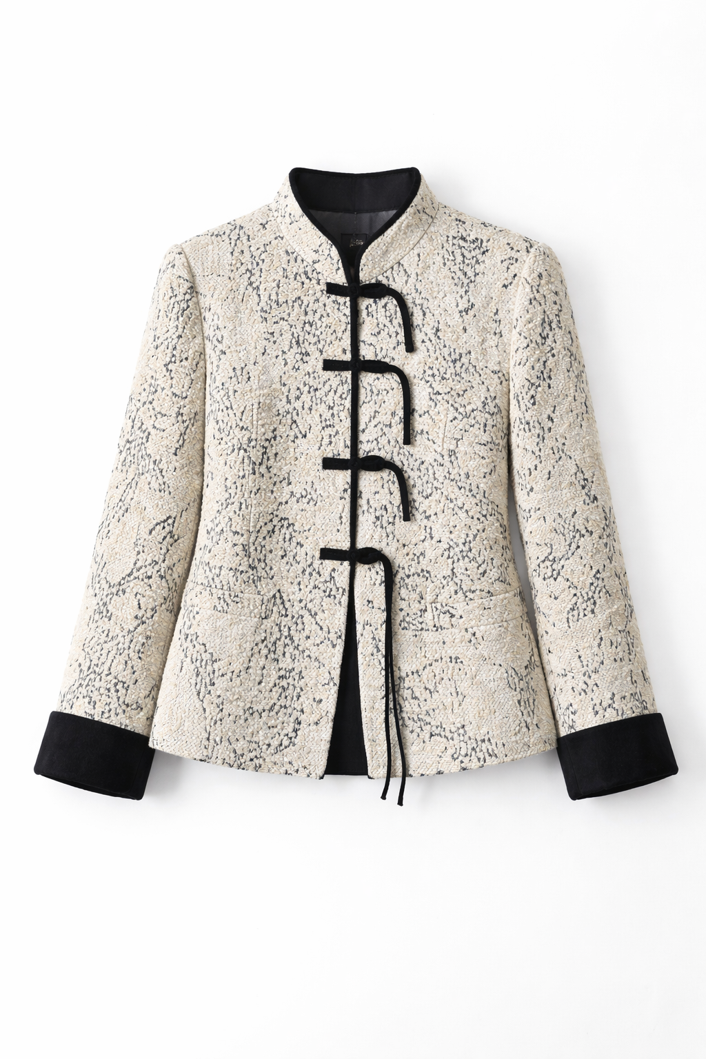 Ink Whisper Mandarin Jacket – Modern Neo Chinese Cream Frog Button Coat