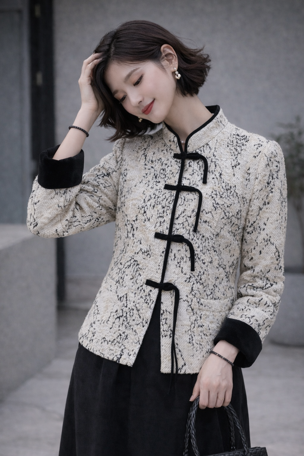 Be the first to review “Ink Whisper Mandarin Jacket – Modern Neo Chinese Cream Frog Button Coat”