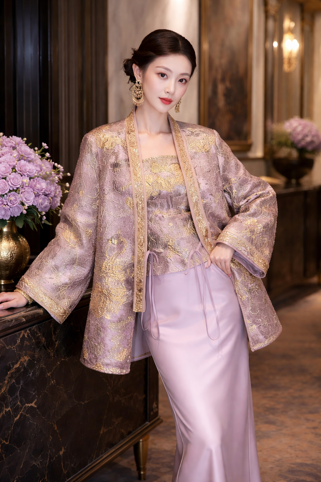Lavender Brocade Jacket Set – Modern Chinese Evening Outfit