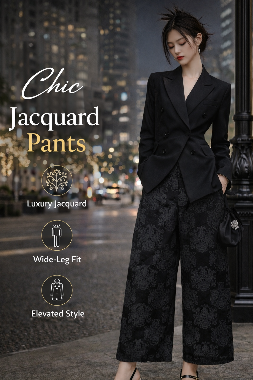 The Midnight Jacquard Wide-Leg Pants are designed for women who dress with intention.